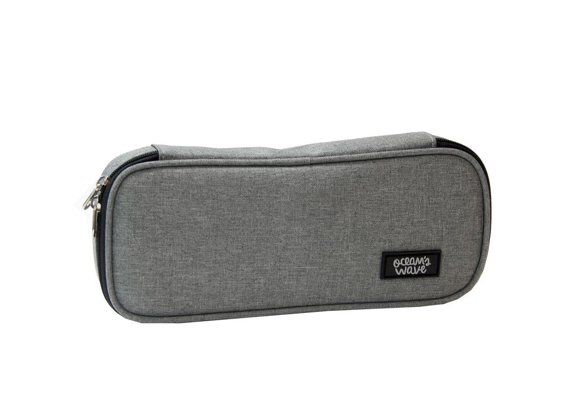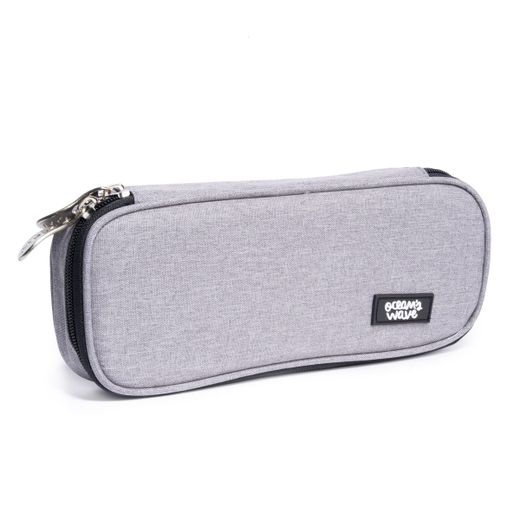 Trousse rectangulaire à 1 zip avec compartiment interne pour crayons et poignée ergonomique en métal. Dimensions (H x L x P) : 4 x 23 x 10 cm.