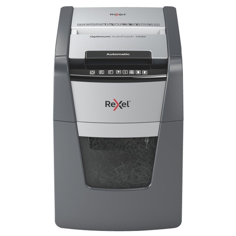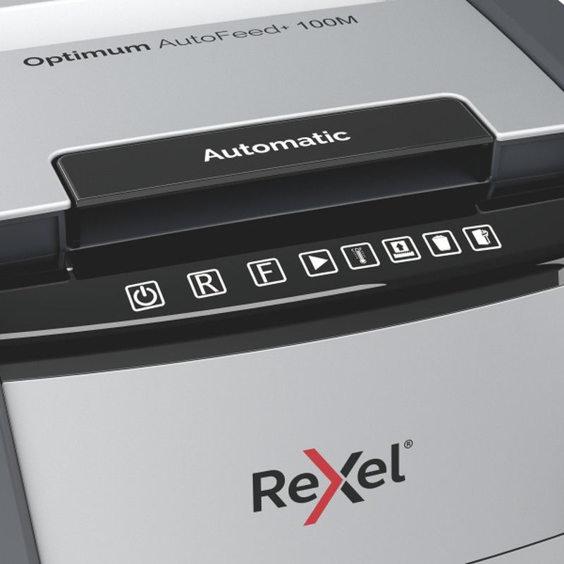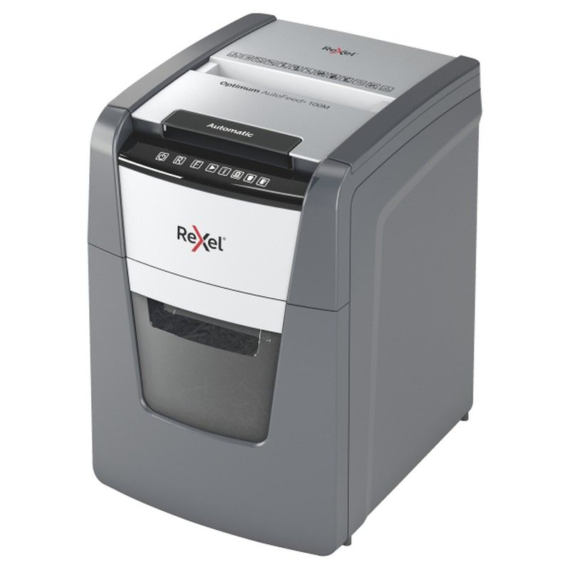 Broyeur automatique Rexel Optimum 100M. Micro coupe, niveau de sécurité P-5. Chargeur 100 feuilles