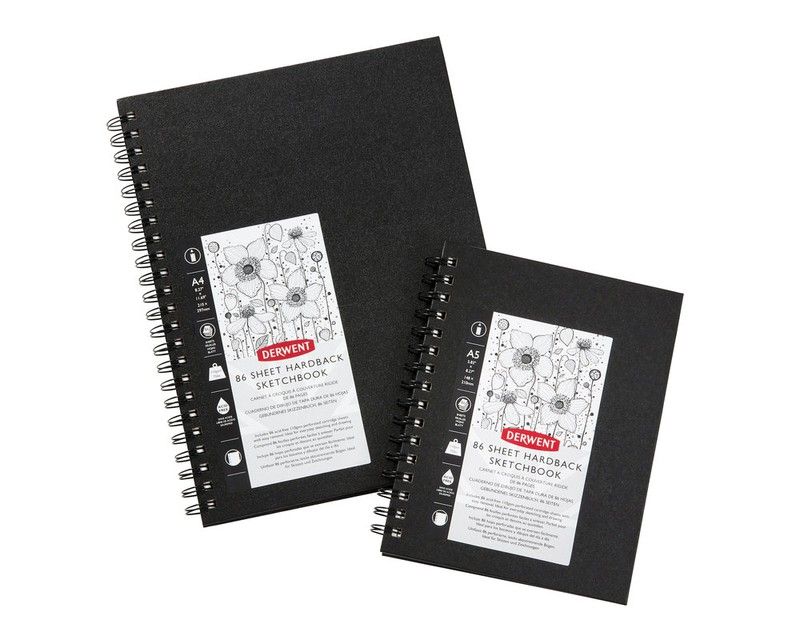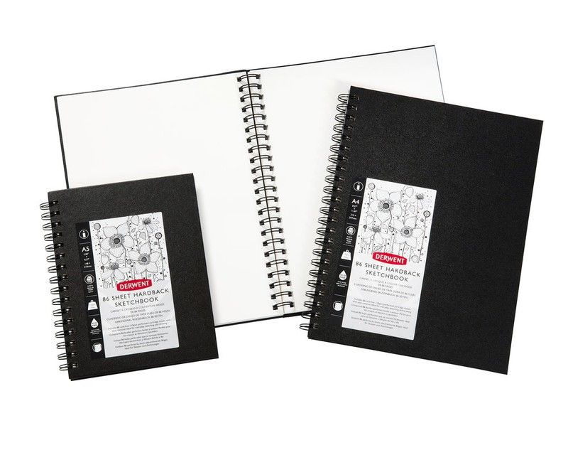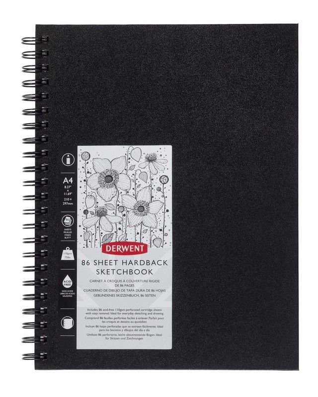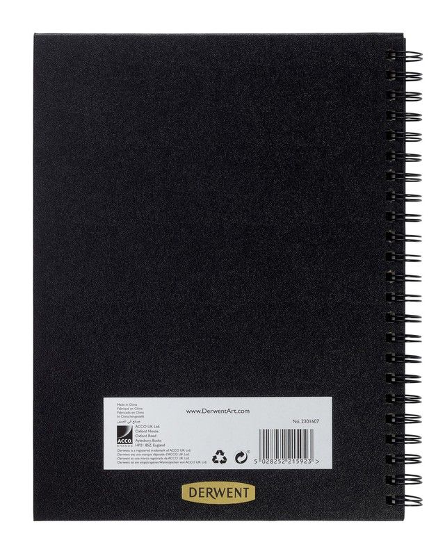 Cahier de dessin Derwent Big Book A4, 86 feuilles 110 g sans acide. Spirale latérale et couverture en vinyle noir dur