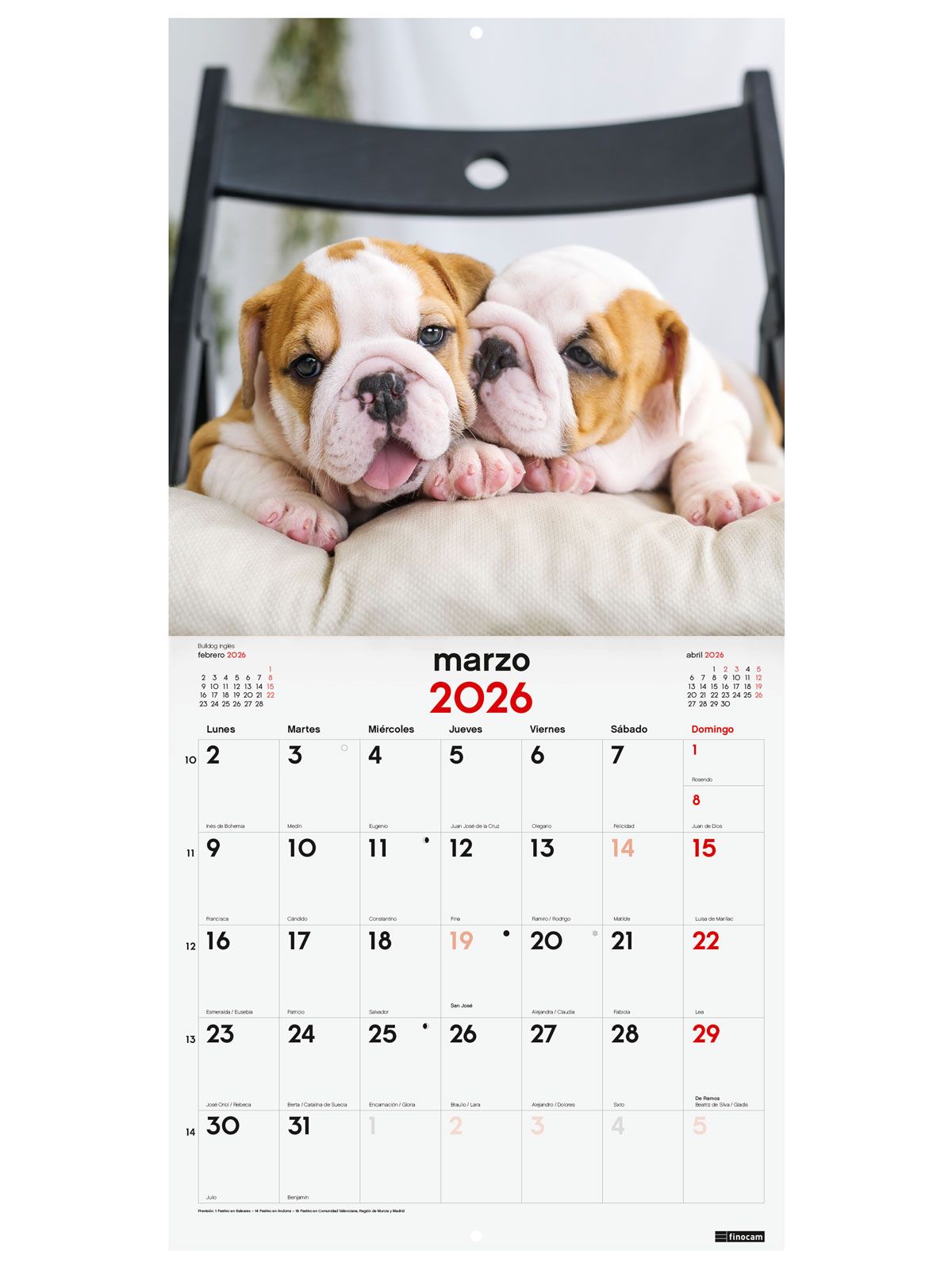 Calendario Pared 30X30 2026 Cachorros