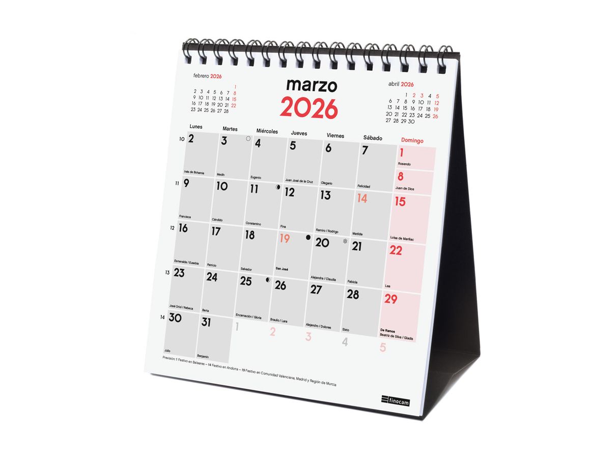 Calendario anual de sobremesa encuadernado con espiral doble. Perfecto para planificar. Contiene información útil y de interés, espacio diario para anotaciones y mes anterior y posterior en cada página. Ideal para el hogar o para la oficina. Duración: Enero 2026 - Diciembre 2026 (12 meses). Interior: Mes Vista. Para planificarse a nivel mensual. Con información de los festivos de España. La anualidad del calendario contiene: onomástica, festivos nacionales, festivos de las CC. AA., días señalados, fases lunares y cambios de estación. Interior delante: mes en curso para escribir. Interior detrás: calendario anual. Dispone de otros contenidos extra: calendario anual del año siguiente, planning anual, listado de festivos de las CC. AA. y de las capitales de provincia e inicios de los años nuevos chino, musulmán, ortodoxo y hebreo. Idioma del artículo: español. Formato: XS - 140x150 mm. Papel y espiral doble metálica. 120 g/m². Papel FSC®.