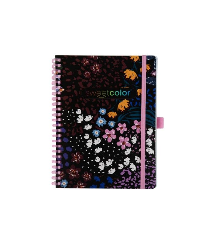Carnet à spirales A5 80H à pois 90 g Floral I