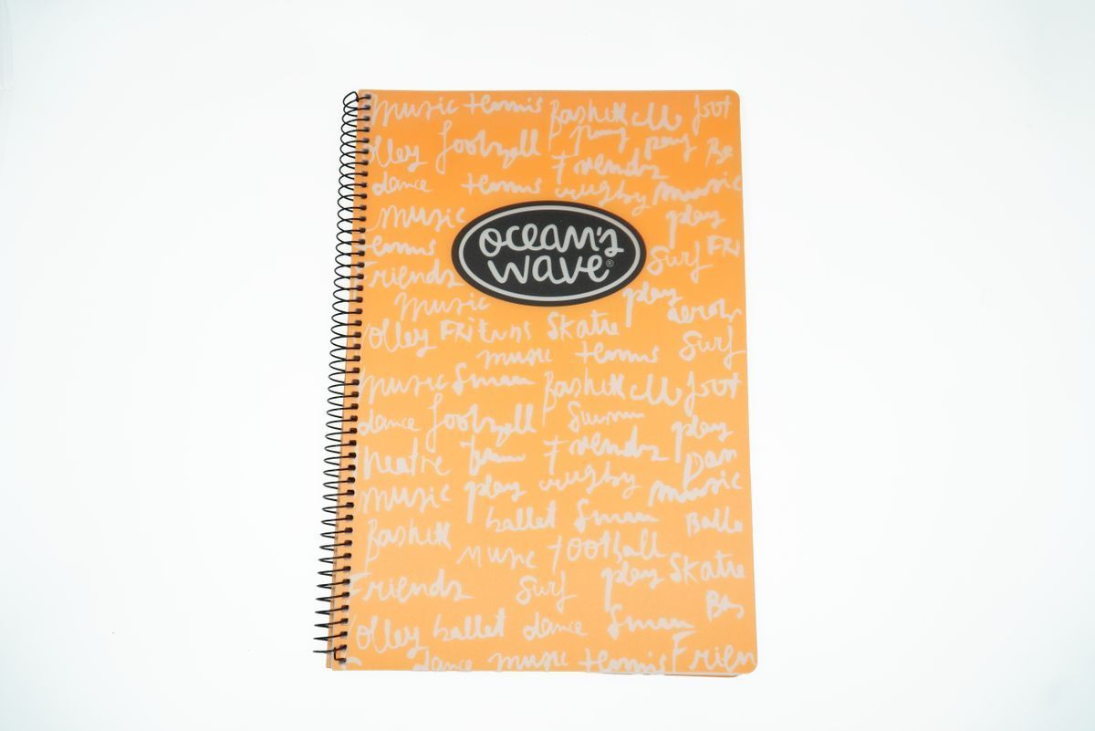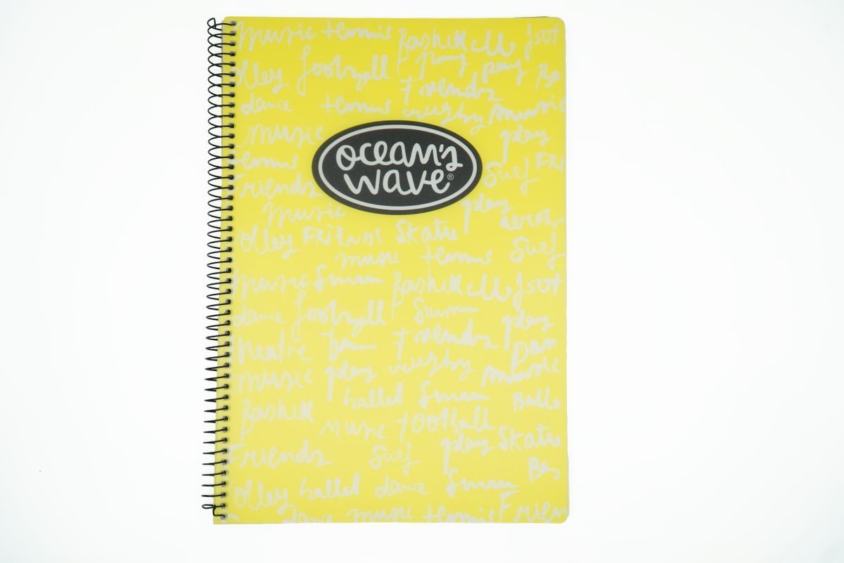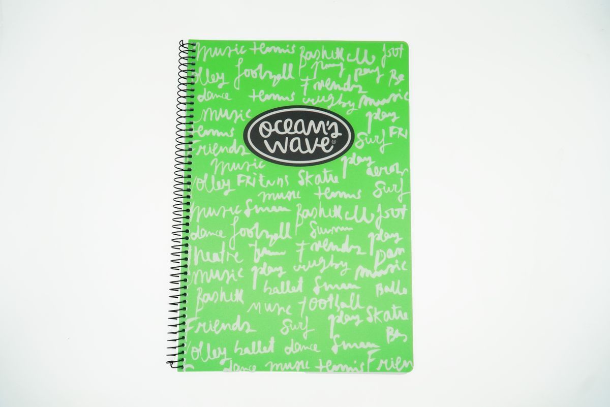 Carnet plastifié format Din A5 New Neon par Ocean's Wave. 80 feuilles de 90 grammes lignées au quadrillage de 4 mm. Couleurs assorties.