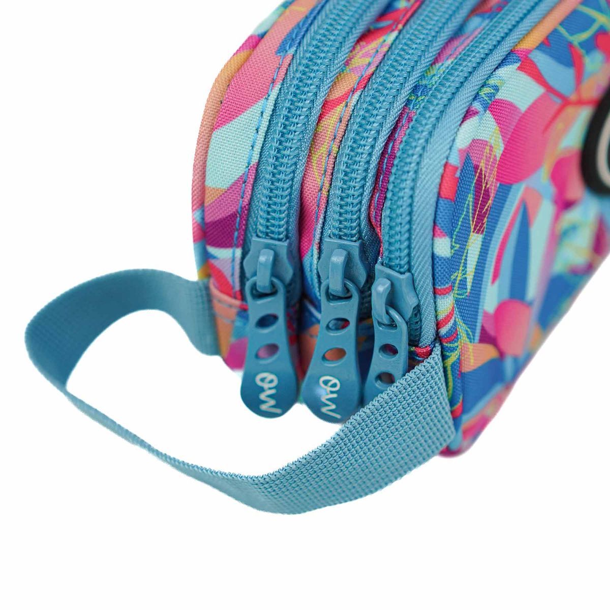 Étui à trois fermetures éclair de qualité supérieure avec tirettes métalliques ergonomiques. Grands compartiments doublés pour organiser les fournitures scolaires. Avec poignée pour un transport facile. Dimensions : 11x23x9 cm.