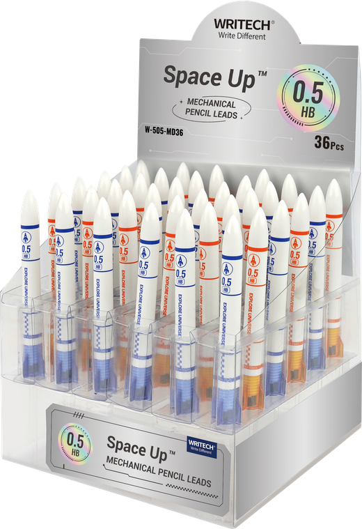Tubo con diseño de cohete de 30 minas de 0,5mm HB. Expositor de 36 tubos.