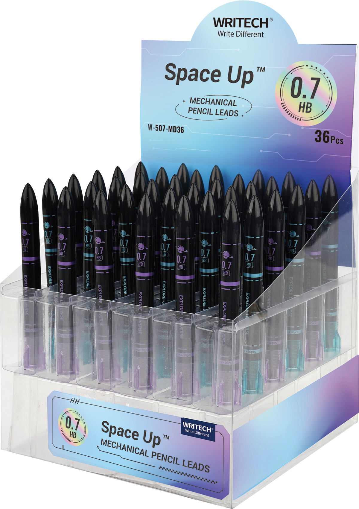 Tubo con diseño de cohete de 30 minas de 0,7mm HB. Expositor de 36 tubos.