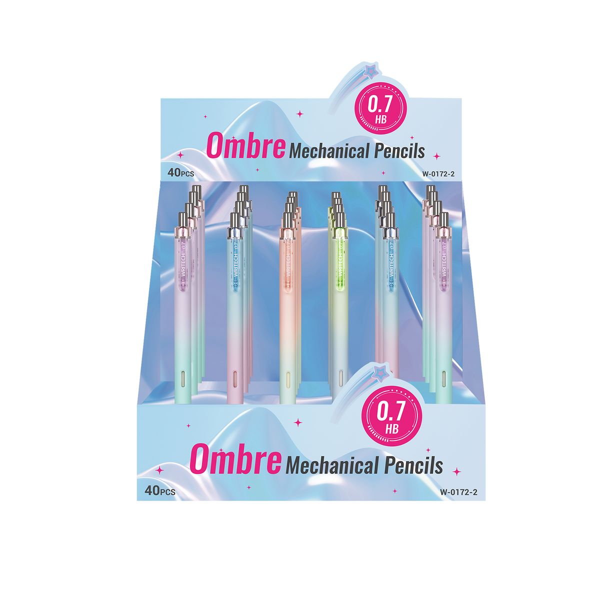 Portaminas retráctil con clip. Cuerpo ergonómico para un mejor uso. 0,7 mm HB.Contenido del expositor: 40 Portaminas en 4 colores diferentes.