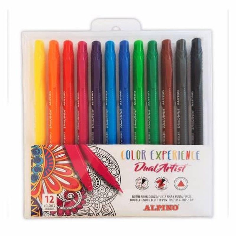 Boîte de 12 feutres de forme triangulaire, ergonomiques et agréables à prendre en main. Double pointe : pointe fine de 0,7 mm, parfaite pour dessiner, tracer et tracer et pointe pinceau de 2,9 mm, idéale pour le lettrage et la coloration des dessins.
