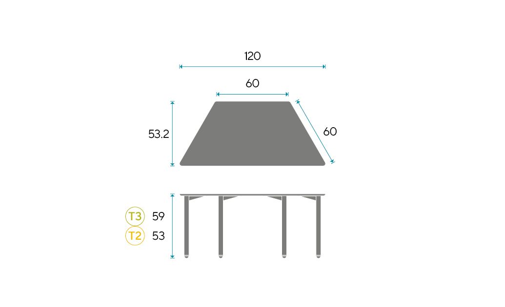 Mesa trapezoidal KIDDY T. 120 x 60 cm. Dos tallas