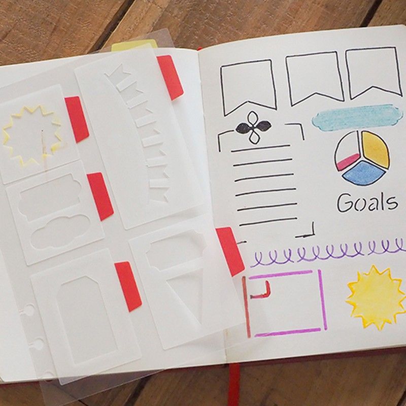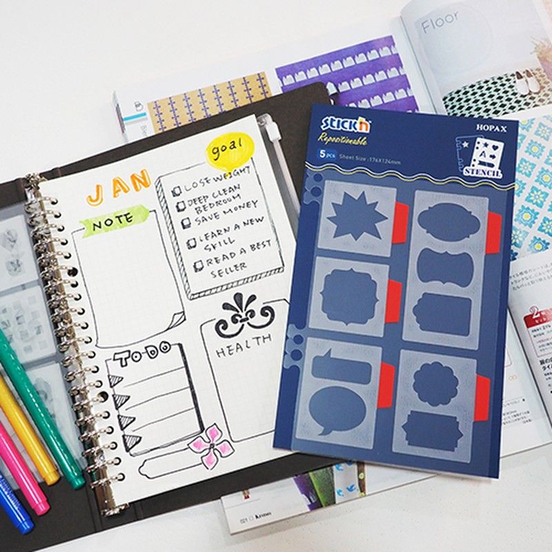 Modèles adhésifs avec formes, lettres et chiffres. Taille : 254 x 305 mm.