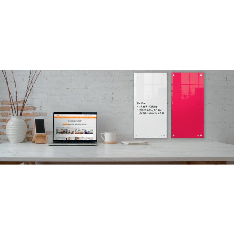 Ce petit panneau de tableau blanc en verre est un ajout utile à tout espace de travail à la maison ou au bureau grâce à sa conception de tableau blanc sans cadre et à sa finition en verre de qualité supérieure. La surface effaçable à sec et le format vertical étroit en font un tableau mémo idéal dans les espaces restreints pour noter des notes et des listes ; Écrivez simplement, nettoyez et recommencez. La surface du panneau de verre de haute qualité offre également la plus haute résistance aux taches et aux marques de marquage. La fixation élégante dans les coins permet un montage mural sûr et sécurisé en orientation paysage ou portrait. Livré avec un marqueur pour tableau blanc. Taille 300x600 mm.