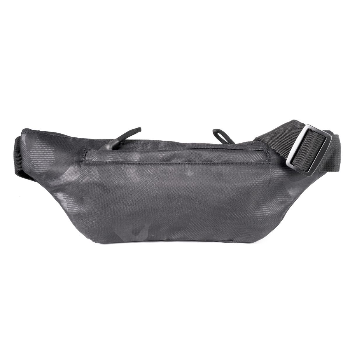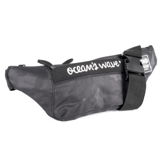 Sac banane Ocean's Wave Explorer avec 2 poches, une à l'avant et l'autre à l'arrière. Motif camouflage noir. Capacité 3,5 litres. Fabriqué en tissu imperméable et avec des détails en néoprène