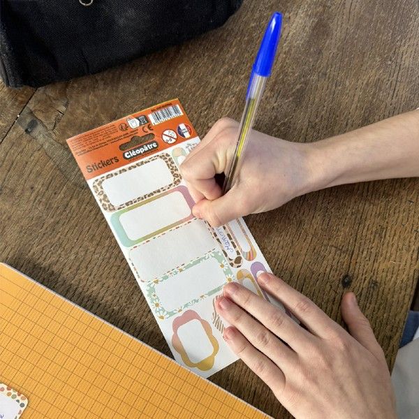 Blíster con 12 pegatinas escolares de motivos juveniles.