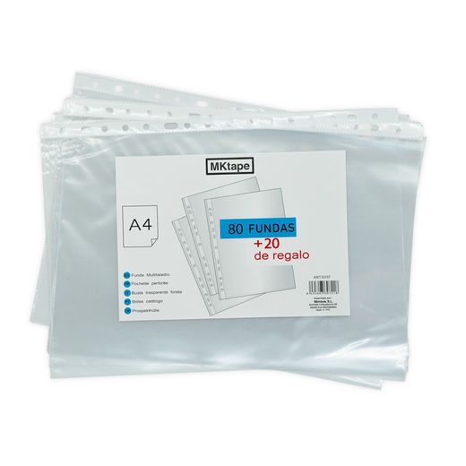 Manchons multi-trous en plastique transparent de 0,5 micron. Format A4. 80 couverts + 20 OFFERTS.