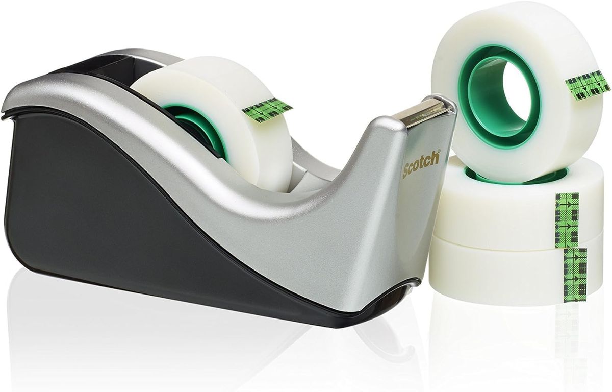 No te pierdas esta promoción de Scotch. Es un pack con un portarrollos modelo C60 plateado de Scotch y 4 cintas Scotch Magic de 19 mm x 33 m. El ahorro está garantizado.