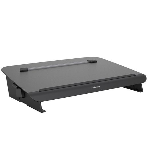 Évite l'inconfort du cou et du dos dû aux postures forcées.La plateforme coulisse, recouvrant le clavier, si désiré, et créant une zone d'écriture ergonomique.Il comprend un guide de lecture magnétique et prend en charge les formats din a4 et din a3. Poids maximum supporté : 5 kg. Angles réglables de 8º, 14º, 20º, 26º et 32º. Hauteurs réglables à 11,6, 13,4, 16,2, 18,8 et 21,4 cm. Dimensions : 11,59 x 56,20 x 34,93 cm (H x L x P). Garantie 3 ans.