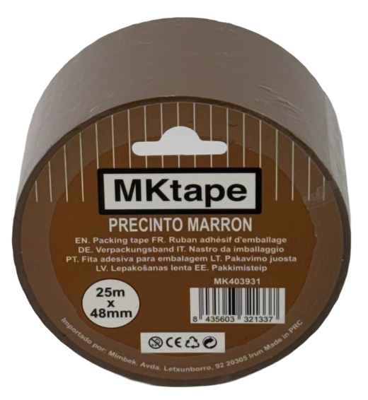 Precinto marrón con adhesivo acrílico a base de agua. Rollo de 25 mt. x 48 mm. Cajas de 36 rollos.