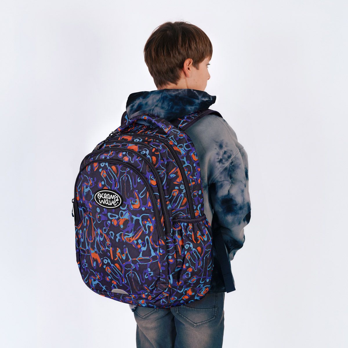Sac à dos par Ocean's Wave. Sac à dos d'école léger avec dos renforcé et rembourré et canaux de ventilation. 33 litres de capacité répartis en 3 compartiments principaux avec fermetures éclair de haute qualité et poignées ergonomiques. Plusieurs poches à l'intérieur du premier compartiment, un compartiment rembourré pour ordinateur portable dans le troisième compartiment et une petite poche extérieure zippée en haut pour les articles à accès rapide. Comprend deux poches latérales avec élastique pour garder votre bouteille toujours à portée de main. Sangles avec deux bandes réfléchissantes et une poignée super rembourrée et résistante qui s'adapte au dos. Résistant à l'eau. Intérieur doublé et poignée supérieure renforcée. Dimensions du dossier : hauteur 45cm, largeur 32cm. Dimensions du sac à dos complet : Hauteur 49 cm, largeur 36 cm. Profondeur 23 cm (divisé en 3 compartiments)