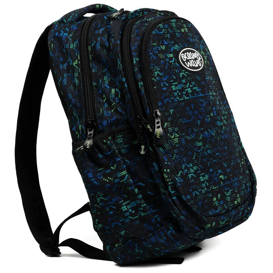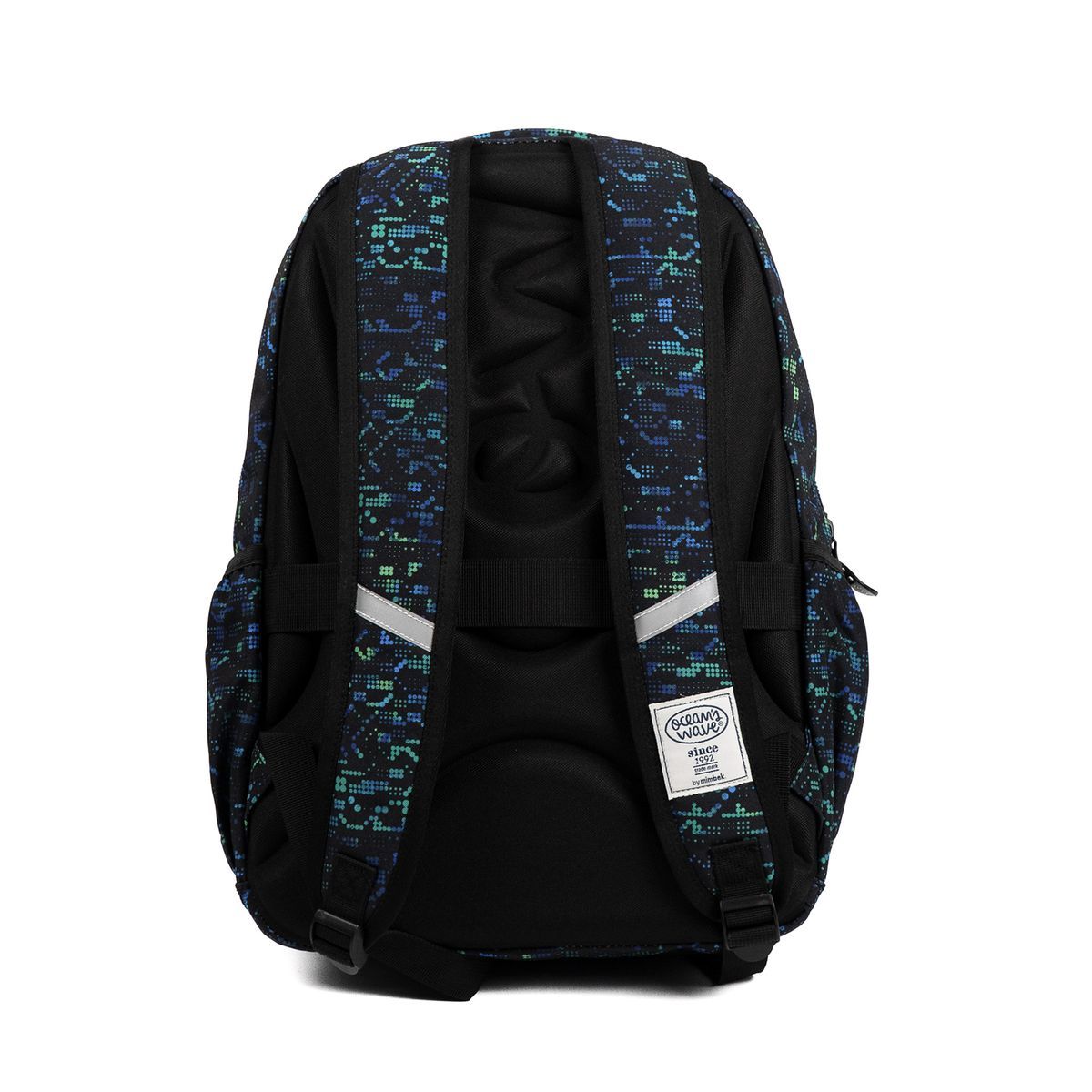 Sac à dos par Ocean's Wave. Sac à dos d'école léger avec dos renforcé et rembourré et canaux de ventilation. 33 litres de capacité répartis en 3 compartiments principaux avec fermetures éclair de haute qualité et poignées ergonomiques. Plusieurs poches à l'intérieur du premier compartiment, un compartiment rembourré pour ordinateur portable dans le troisième compartiment et une petite poche extérieure zippée en haut pour les articles à accès rapide. Comprend deux poches latérales avec élastique pour garder votre bouteille toujours à portée de main. Sangles avec deux bandes réfléchissantes et une poignée super rembourrée et résistante qui s'adapte au dos. Résistant à l'eau. Intérieur doublé et poignée supérieure renforcée. Dimensions du dossier : hauteur 45cm, largeur 32cm. Dimensions du sac à dos complet : Hauteur 49 cm, largeur 36 cm. Profondeur 23 cm (divisé en 3 compartiments)