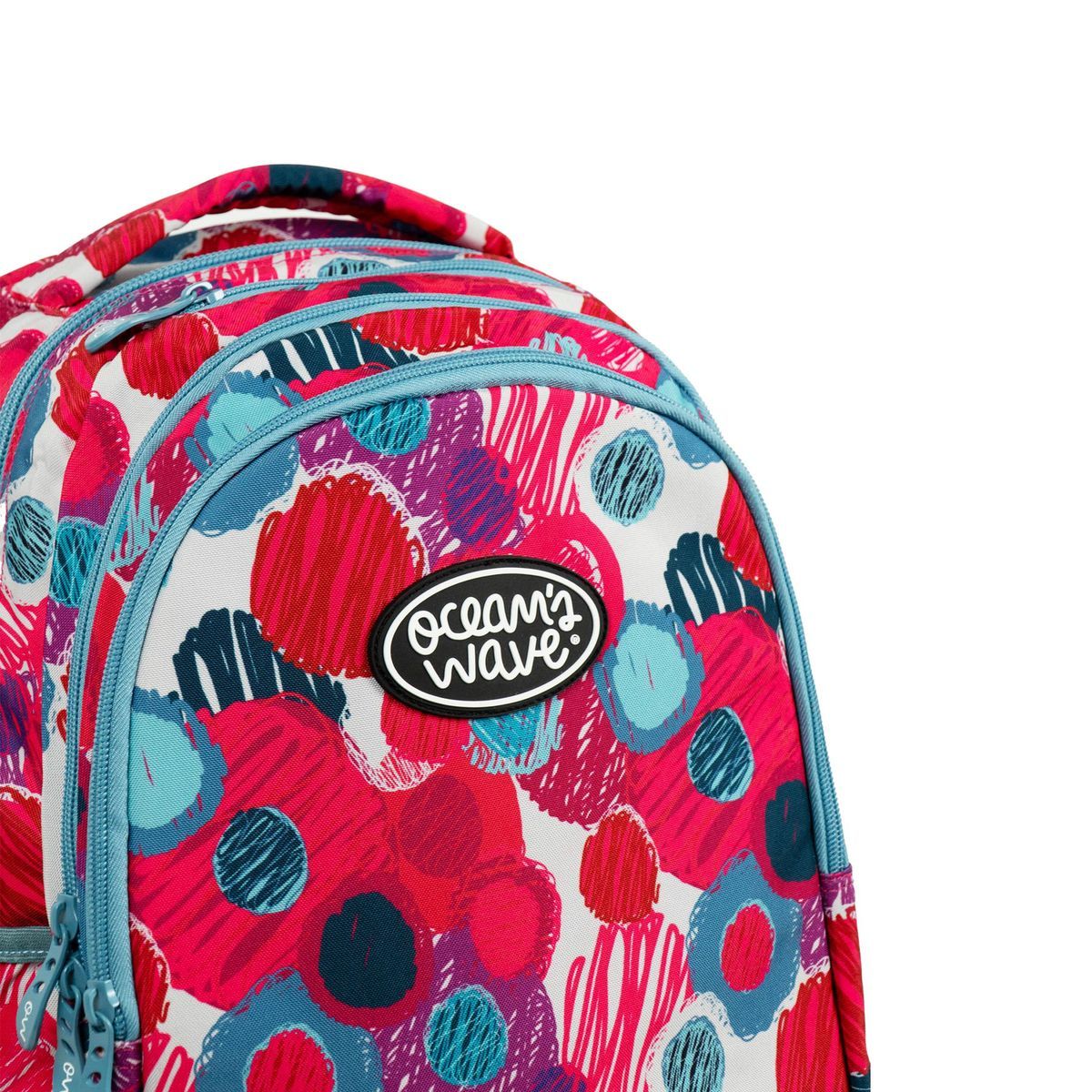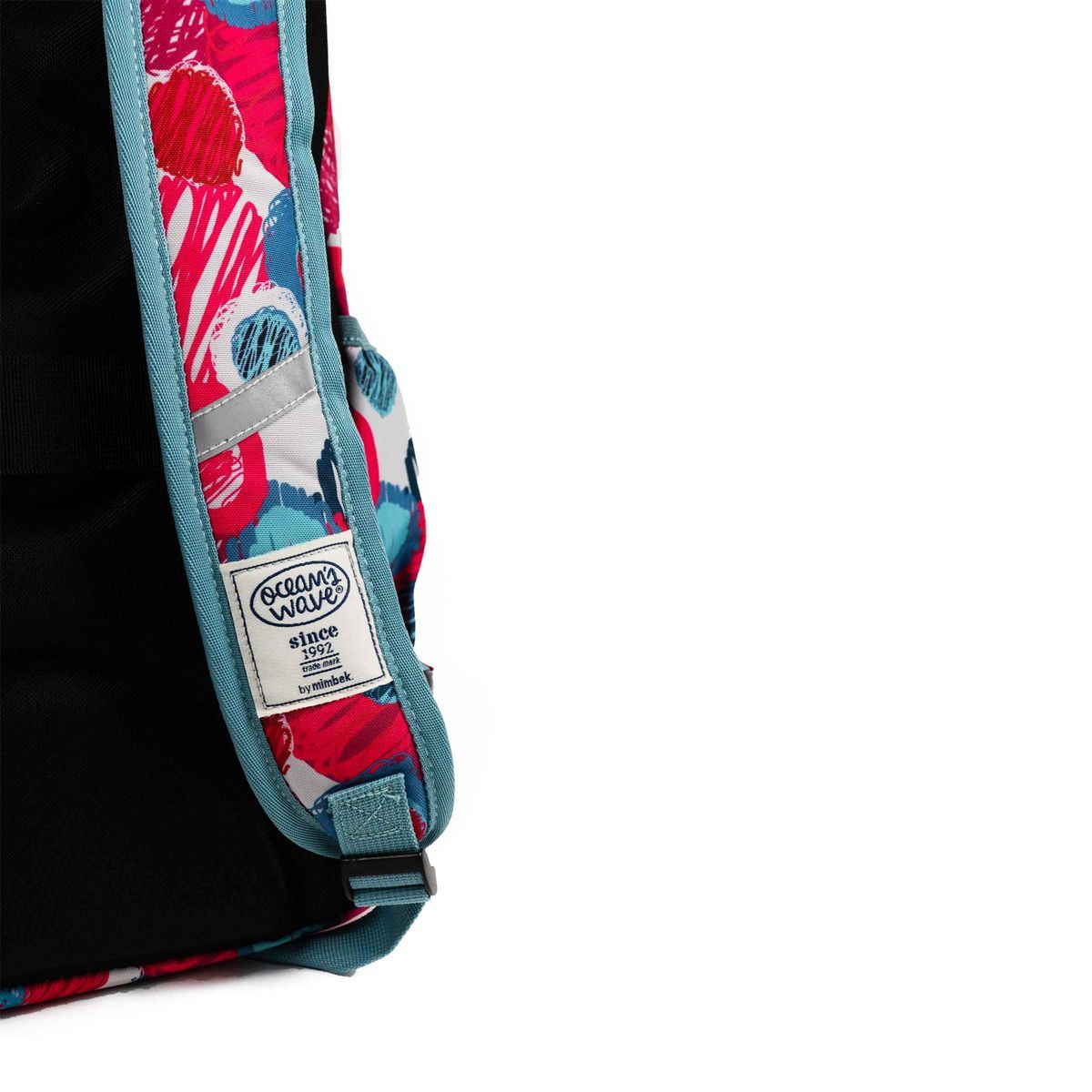 Sac à dos par Ocean's Wave. Sac à dos d'école léger avec dos renforcé et rembourré et canaux de ventilation. 33 litres de capacité répartis en 3 compartiments principaux avec fermetures éclair de haute qualité et poignées ergonomiques. Plusieurs poches à l'intérieur du premier compartiment, un compartiment rembourré pour ordinateur portable dans le troisième compartiment et une petite poche extérieure zippée en haut pour les articles à accès rapide. Comprend deux poches latérales avec élastique pour garder votre bouteille toujours à portée de main. Sangles avec deux bandes réfléchissantes et une poignée super rembourrée et résistante qui s'adapte au dos. Résistant à l'eau. Intérieur doublé et poignée supérieure renforcée. Dimensions du dossier : hauteur 45cm, largeur 32cm. Dimensions du sac à dos complet : Hauteur 49 cm, largeur 36 cm. Profondeur 23 cm (divisé en 3 compartiments)