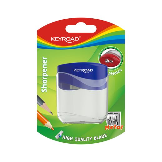 Sacapuntas de metal de 2 usos para puntas de 8 mm y 11 mm. Con depósito. Cuchilla de alta calidad. Blíster 1 unidad.