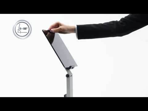 Outil parfait pour les présentations dans les bâtiments publics, les foires et les expositions, les hôtels et les restaurants et sur le point de vente.Design minimaliste élégant qui s'intègre dans n'importe quel environnement. Grande stabilité. Supporte tous les formats de tablettes de 7 à 13 pouces. Ouverture symétrique du support : l'ouverture dynamique mesure de 160 à 275 mm. Insertion et retrait faciles de la tablette. Il est orientable à 360° avec des points de fixation tous les 90°.