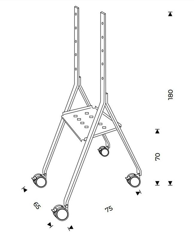 Support mobile compatible avec les écrans interactifs de 65" à 86". Sa structure en tube d'acier lui confère une robustesse totale, ainsi que ses 4 roues haute résistance équipées d'un frein de sécurité.