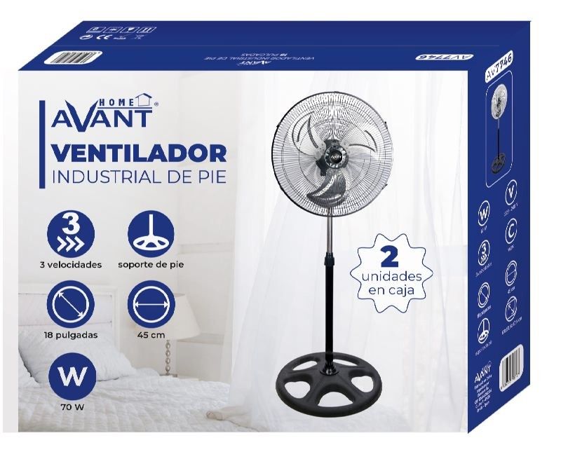 Ventilateur Industriel Avant 18" - 70W - 45Cm 2 Unités en Caixa - Grade Preta
